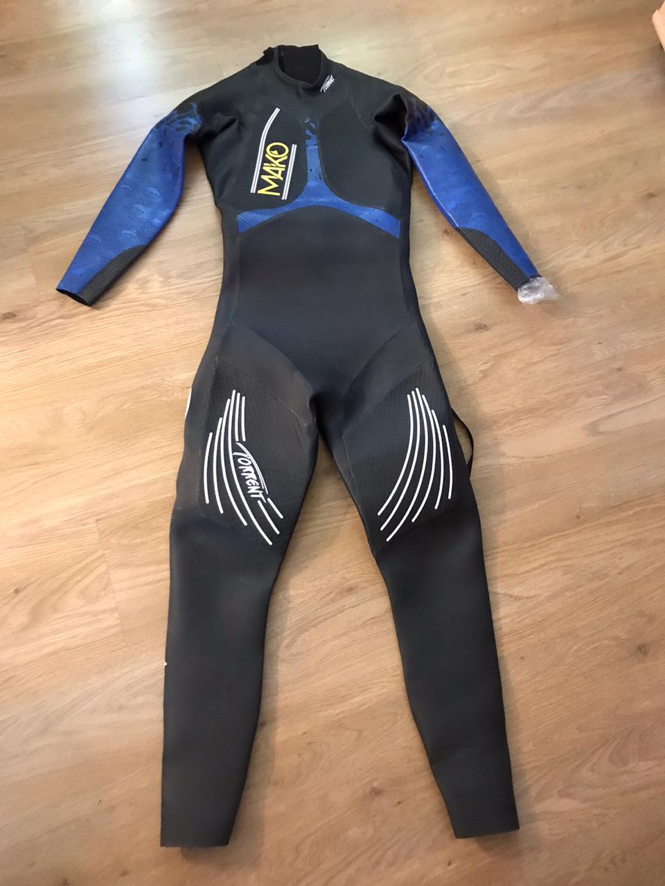 Antes de describir mi experiencia con el modelo Torrent de Mako, quisiera hacer una breve descripción de sus características. Como la mayoría de los trajes actuales, la confección del Torrent está hecha de paneles de distintos materiales (grosor), según las necesidades de los nadadores. Así, por ejemplo, en los hombros se usa un neopreno de solo 1,5 mm para lograr mayor libertad de movimientos, flexibilidad, soltura y reducción de fatiga muscular. En el torso, piernas y parte de la espalda se utiliza un neopreno de 5 mm con celdas de aire para una máxima flotabilidad. Complementando los paneles del torso, la parte superior se termina en los costados con un espesor de 2mm para facilitar la rotación. En el exterior e interior de las piernas se utiliza un material de 3mm para mayor flexibilidad y facilitar el sacado rápido en transiciones. En los brazos hasta las muñecas, un ultra delgado de 1,5 mm que garantiza un sacado rápido en transiciones. En el antebrazo, tiene un material áspero que simula la piel de tiburón diseñado para “agarrar” agua, tener un mayor control del movimiento subacuático y mejorar la sensibilidad.