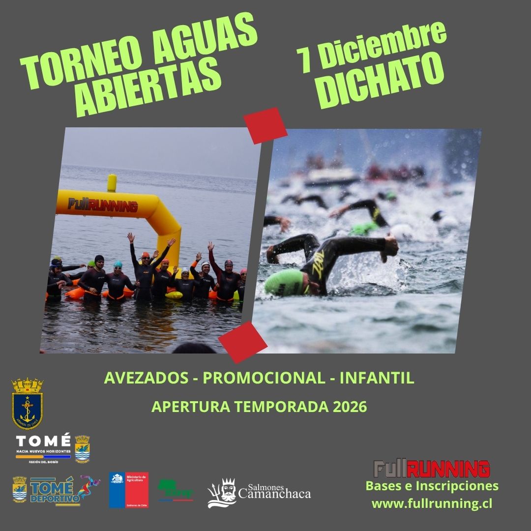 El evento de Aguas Abiertas se realizará el domingo 7 de diciembre en el sector Norte Playa Dichato, comuna de Tomé y contará con tres distancias que son Avezados (2.500m), Promocional (1.250m) e infantil (250m).