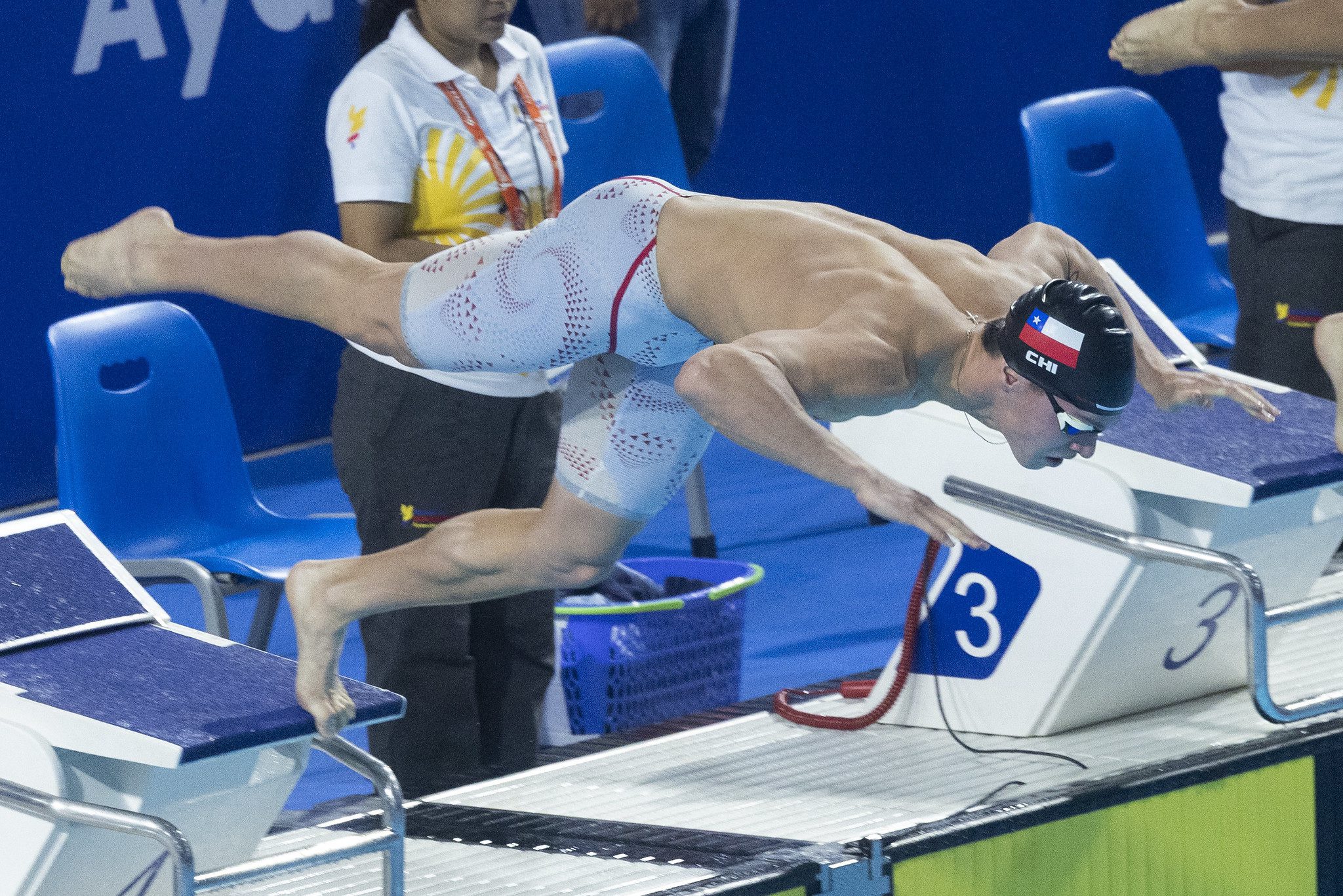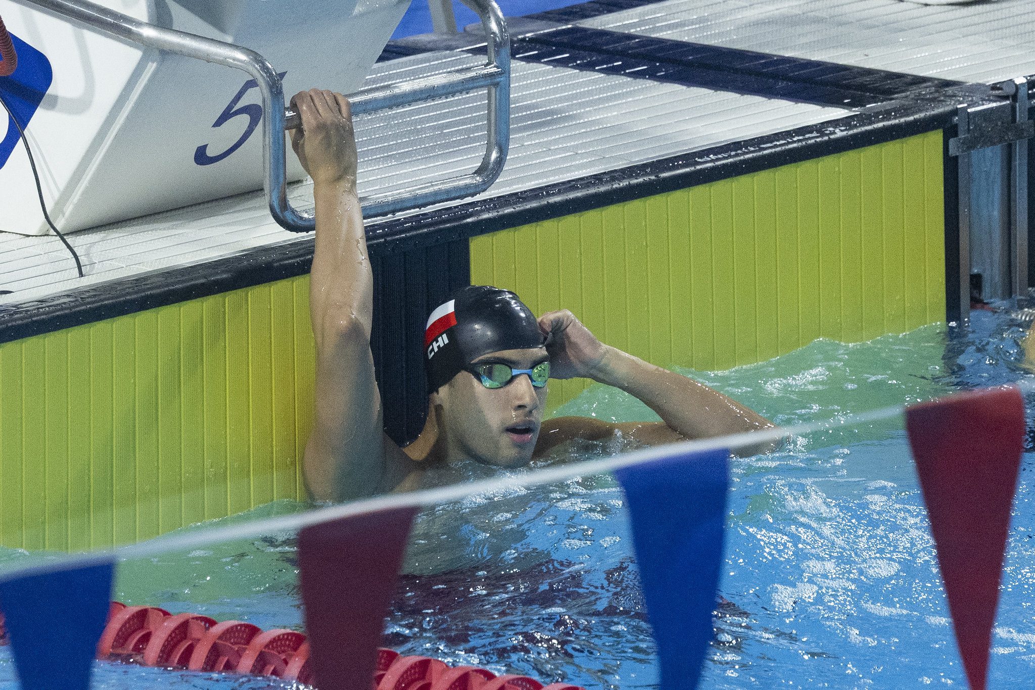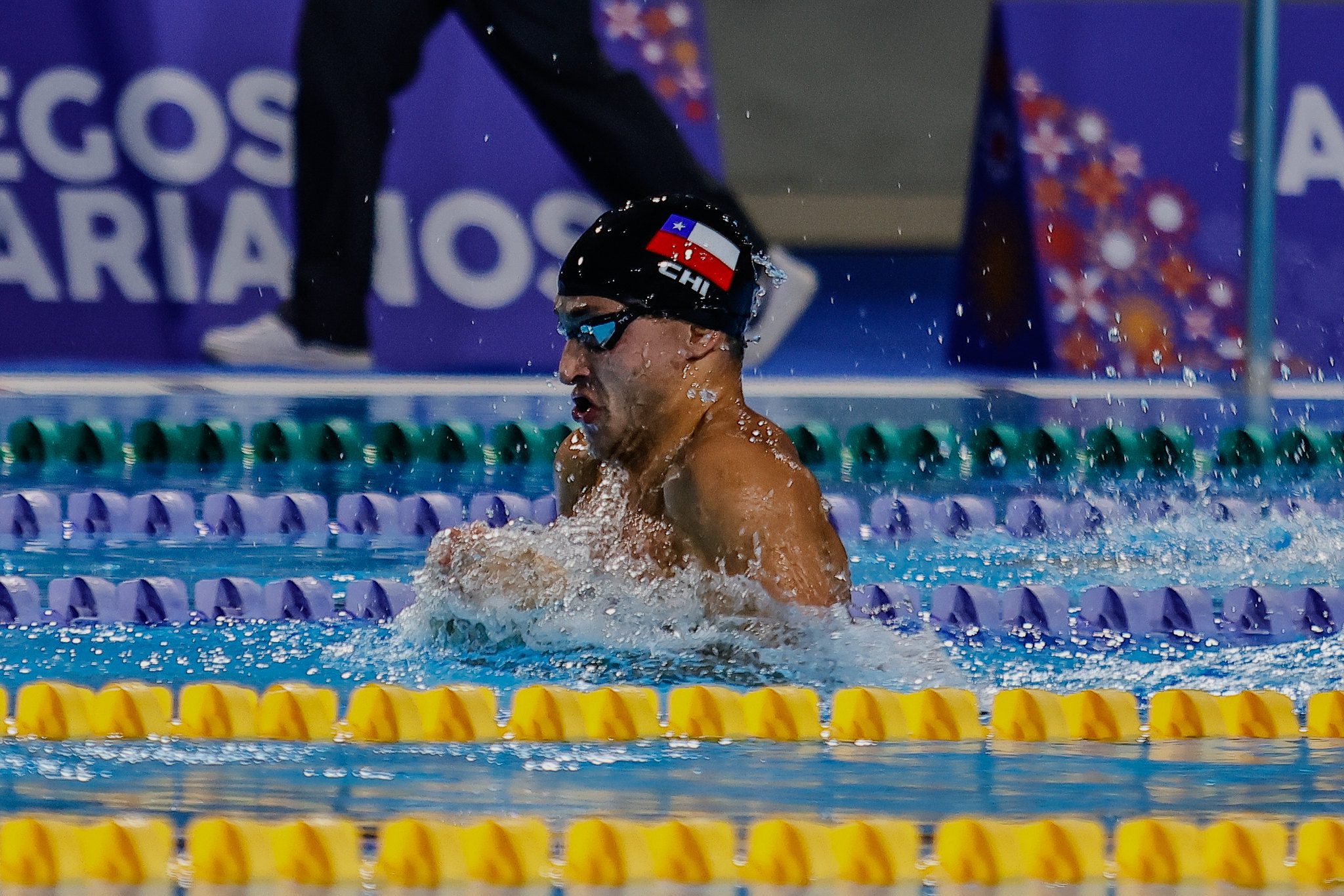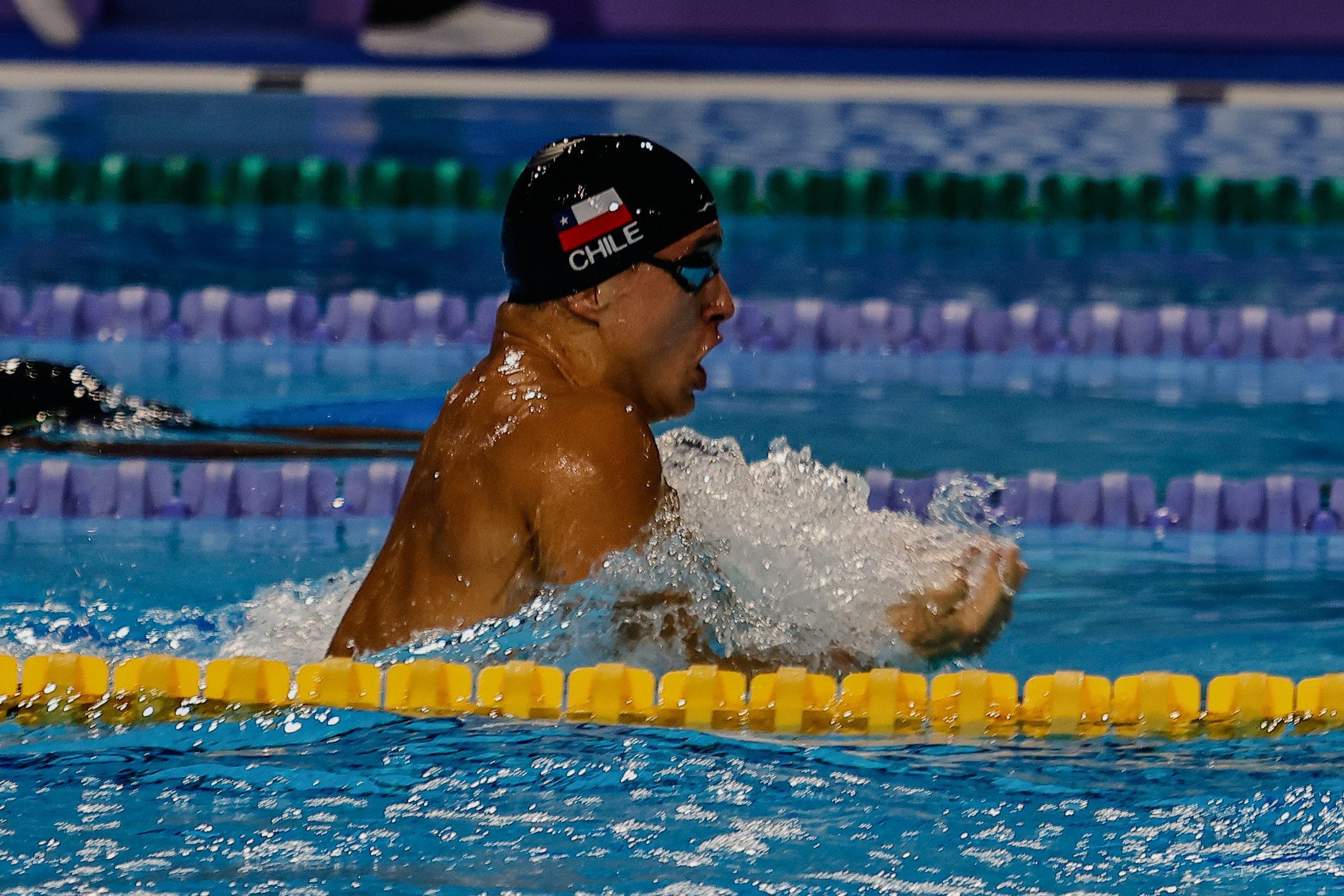 Vicente Villanueva se ubicó por detrás de su compañero Mariano Lazzerini para lograr el 1-2 chileno en la prueba de los 200m pecho y registró un tiempo de 2:18.32.