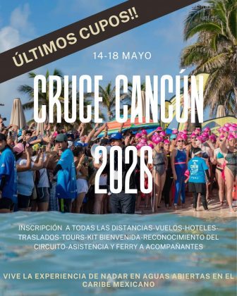 El 16 y 17 de mayo del 2026 se realizará una nueva edición del Cruce de Cancún, competencia de aguas abiertas que cuenta con distancias de 10K, 3.8K y 1.9K a desarrollarse desde Cancún hasta Isla Mujeres, México.