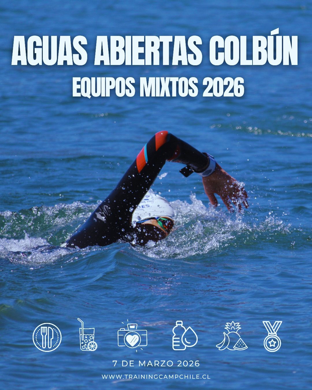 El desafío de Aguas Abiertas Equipos Mixtos 2026 se desarrollará el sábado 7 de marzo la Playa del Balneario Machicura de Colbún, región del Maule y contemplará una distancia de 500m en relevos.