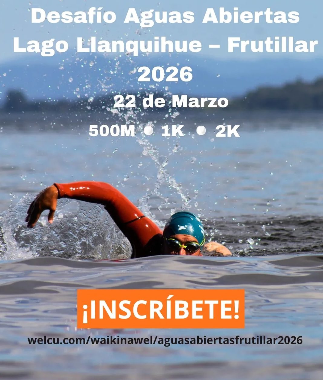 Waiki Nawel SpA te invita a ser parte del Desafío Aguas Abiertas Lago Llanquihue – Frutillar 2026 para el domingo 22 de marzo en la región de Los Lagos y con distancias de 2K, 1K y 500m.