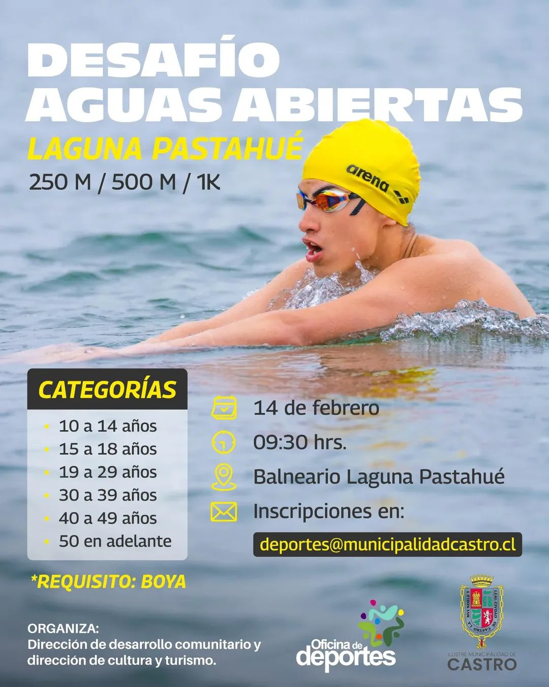 Cada nadador deberá inscribirse a través del mail deportes@municipalidadcastro.cl.