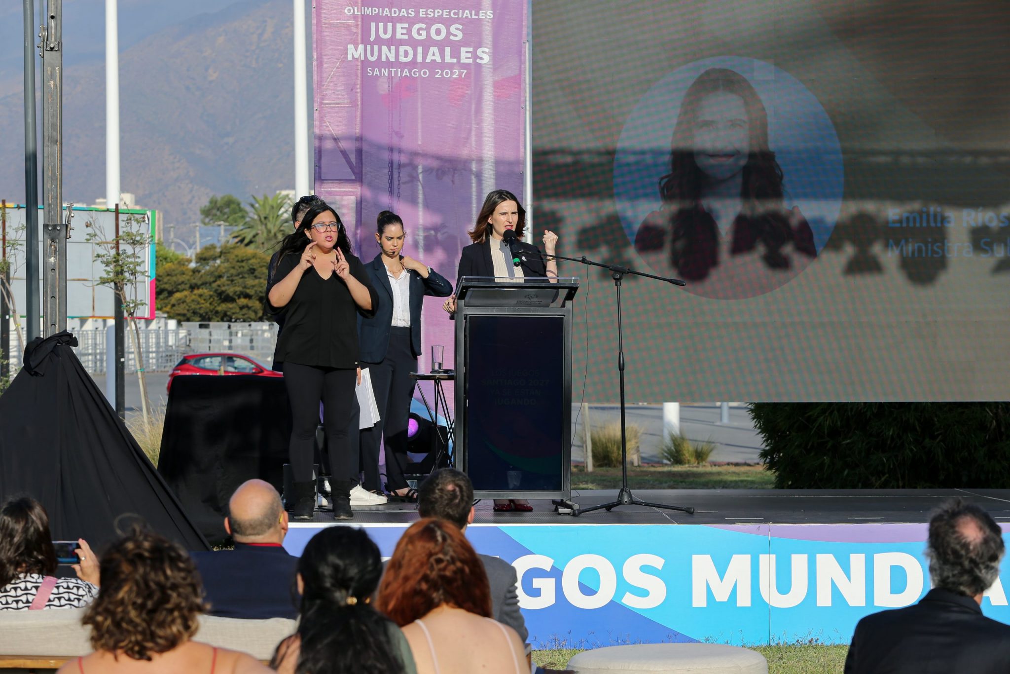“Como atletas de Olimpiadas Especiales Chile, estamos orgullosos de nuestro logo al mundo. Los colores y la imagen representan la energía de nuestro país y la fuerza de nuestro movimiento. El logo es la carta de presentación de Santiago 2027 al mundo y transmite nuestra emoción, diversidad y conexiones”, señaló Gonzalo Escobar.