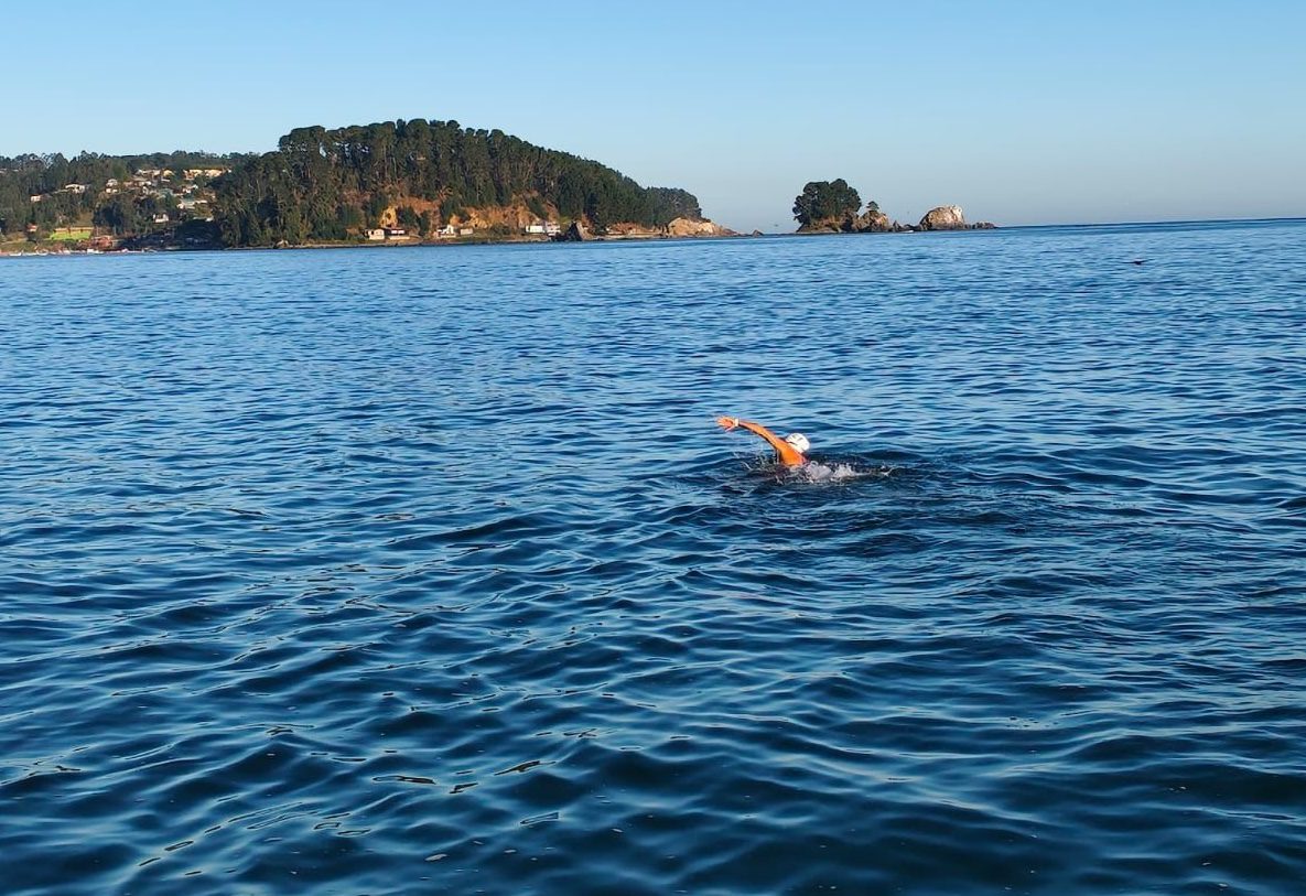 La nadadora de aguas gélidas Kyarha Carpo nado 3.2K desde Pingueral hasta Coliumo (ida y vuelta) el pasado jueves 2 de abril de 2026 con un tiempo de 1:07:00 y con el agua a 10 grados Celsius.